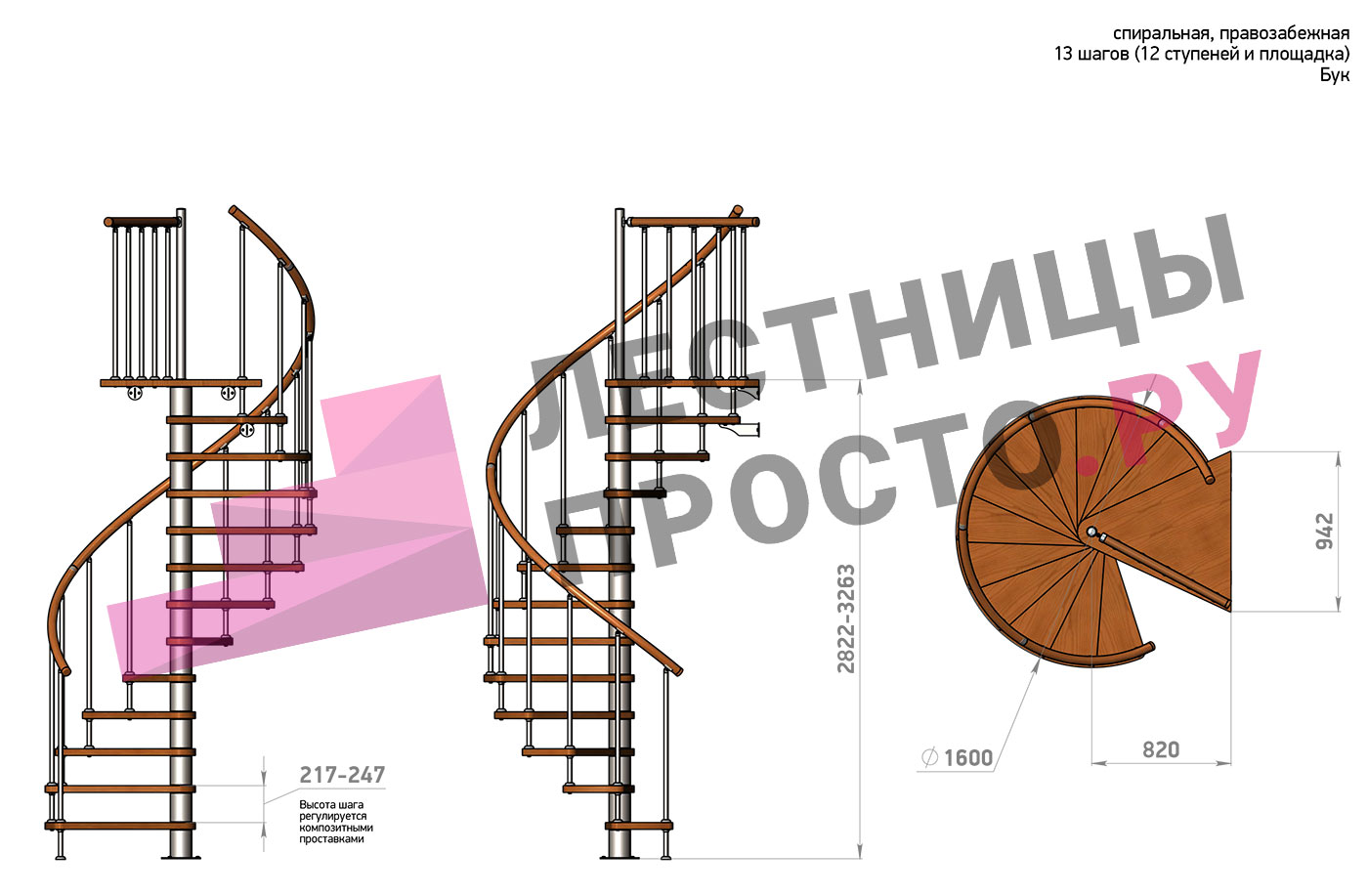 Ширина ступени между центральной колонной и поручнем ≈ 680 мм