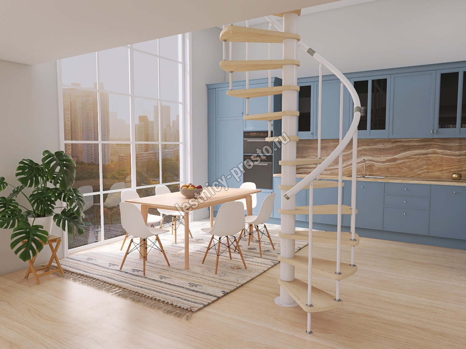 Винтовая лестница Prosto Spiral White D120см, h303.9-348,1 см, бук