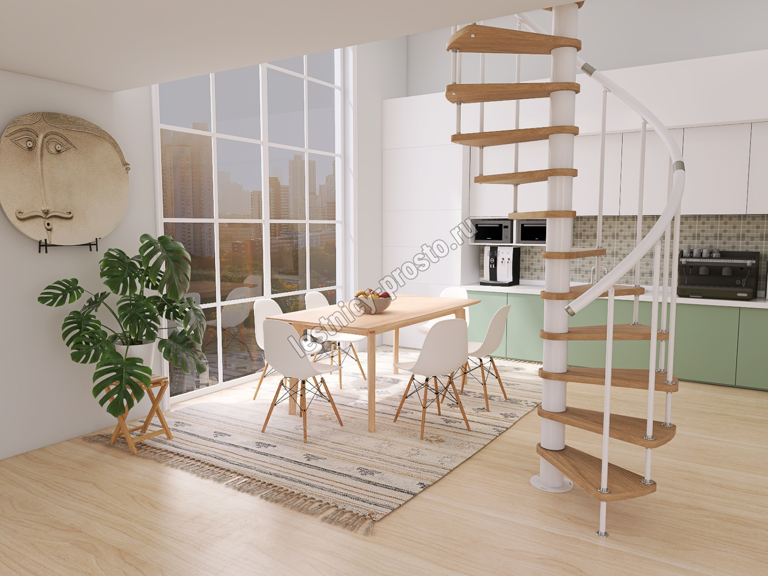 Винтовая лестница Prosto Spiral White D120см, h296.9-338.1 см