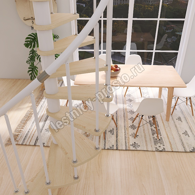 Винтовая лестница Prosto Spiral White D140см, h303.9-348,1 см, бук