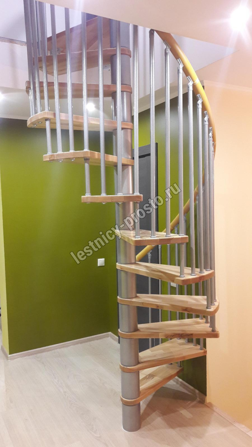 Винтовая лестница SPIRAL WOOD d160 см, серебро, лакированный бук