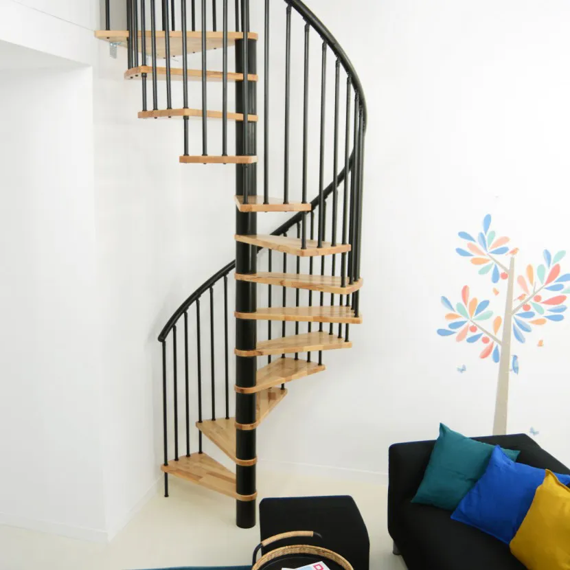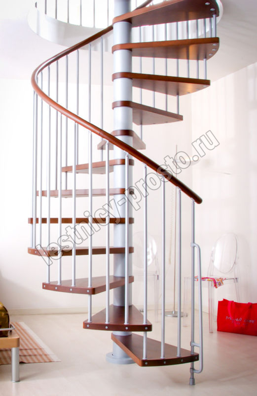 Площадка лестницы позволяет вмонтировать ее в проём потолка любой формы и размера. При монтаже лестницы, с помощью специальных пластиковых вставок, варьируется высота шага в пределах от 210 мм до 235 мм, за счёт чего общая высота лестницы может быть получена в пределах ;от 2530 мм до 3060 мм. С помощью дополнительных секций можно увеличить высоту базовой модели до 3770 мм. Клан создается путем сочетания цветов стали со светлыми (натуральными) или темными тонированными однотонными протекторами из бука. Поручни из ПВХ с эффектом дерева с алюминиевым сердечником выпускаются в светлом или темном исполнении, чтобы соответствовать оттенку протектора. Перила состоят из стальных балясин, окрашенных в черный (RAL 9017), белый (RAL 9010) или серый (RAL 9006). Концы черные для черной лестницы и серые для серой и белой лестниц.