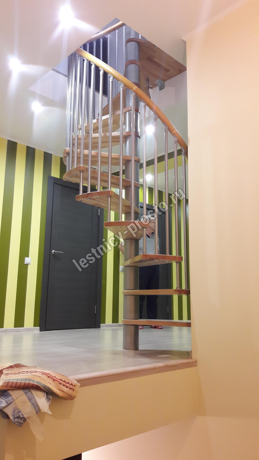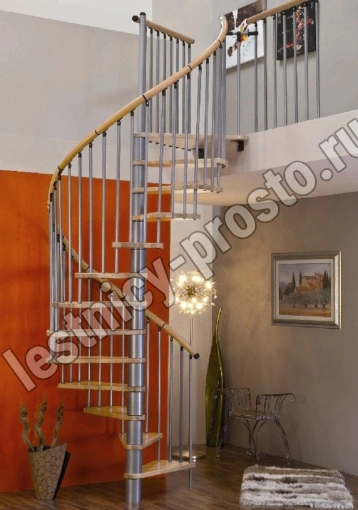 Винтовая лестница SPIRAL WOOD d120 см. серебро, лакированный дуб