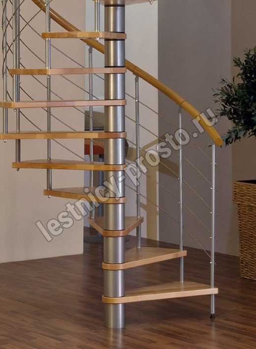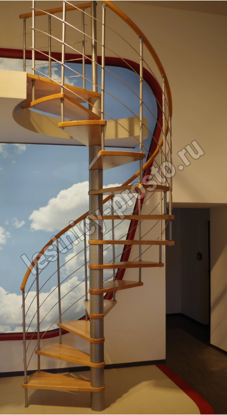 Винтовая лестница Venezia d120 см, серебро, бук лакированный