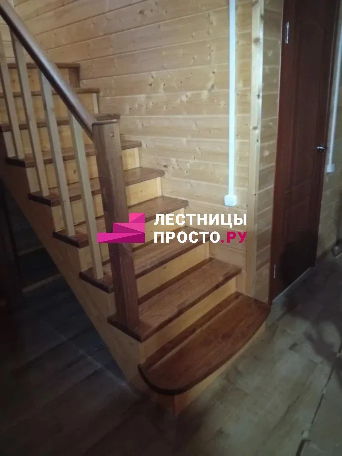 Г-образная лестница из сосны для частного дома ЛС-07/4