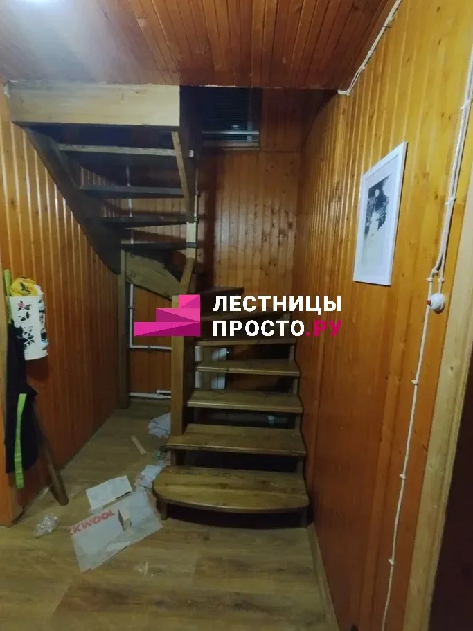 Лестница из сосны с поворотом без покраски