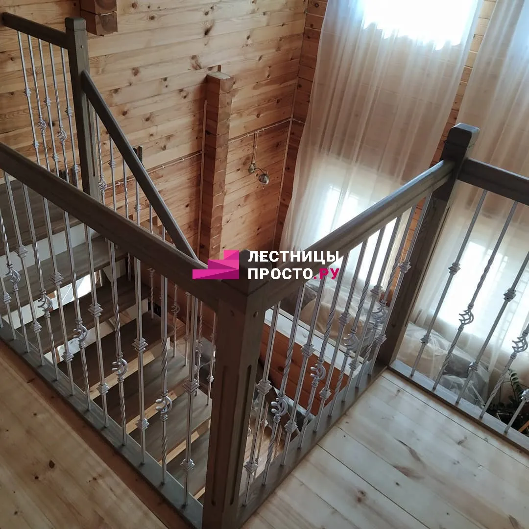 Лестница из сосны для частного дома К-001м/2