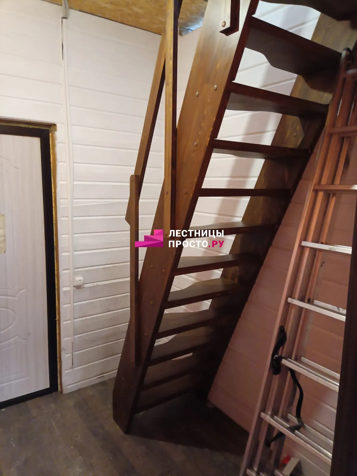 Прямая лестница из сосны без покраски