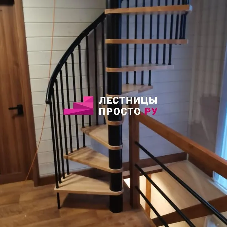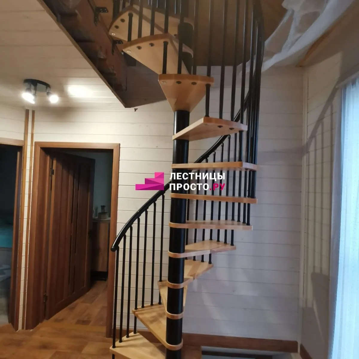 Современная винтовая лестница на мансардный этаж в деревянном доме LP-3066
