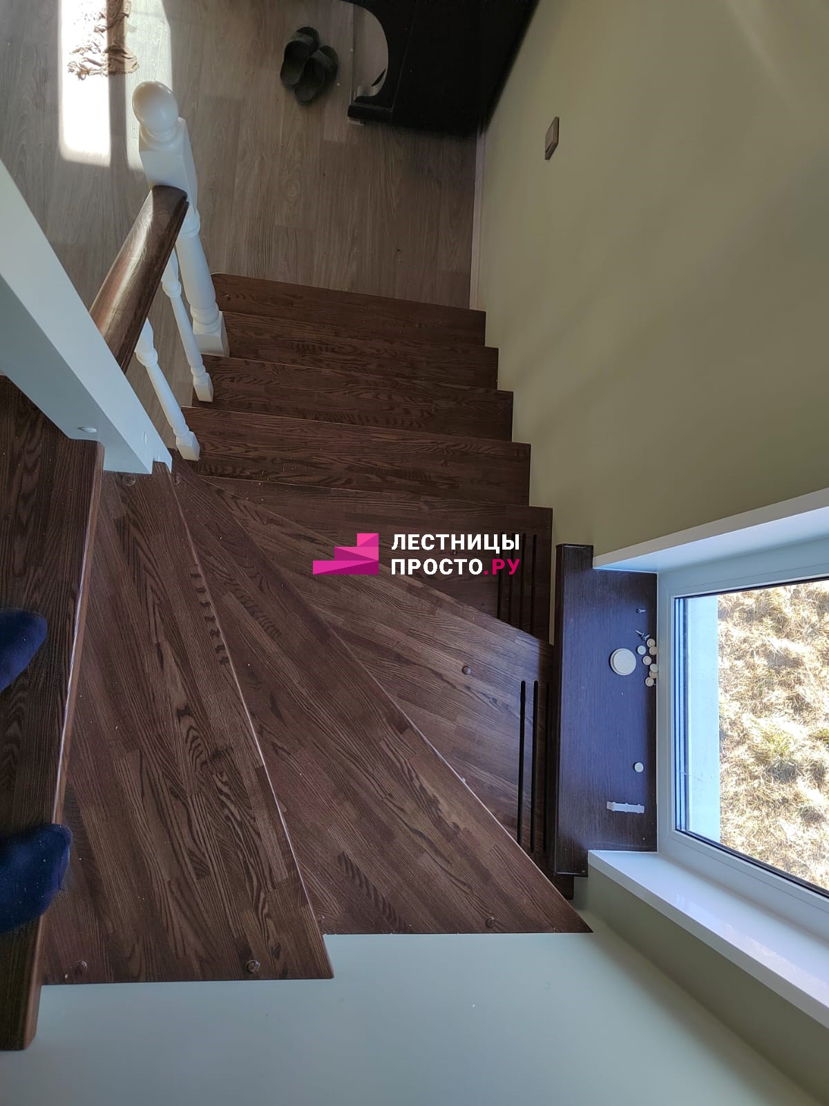 Лестница на второй этаж из лиственницы по индивидуальному проекту LP-000468